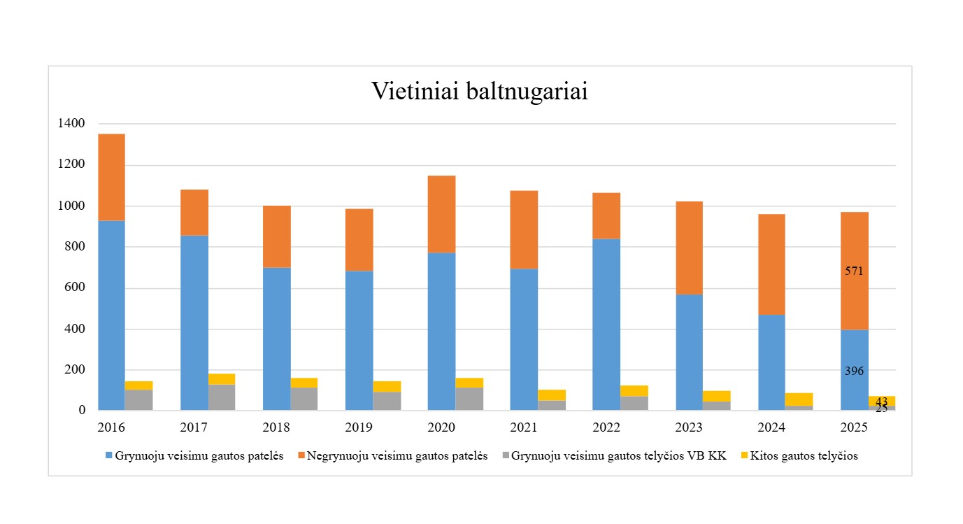 Pirmoje XX a. pusėje baltnugariai galvijai sudarė 10 proc. visų auginamų galvijų. Šiems galvijams buvo būdinga masyvi kakta, ilgas, su aukštu pagurkliu kaklas, ilgas liemuo, trumpos kojos, priekin atsikišęs tešmuo, dideli speniai. Baltnugariai galvijai buvo pieningi, tinkami darbui, sveiki, ilgaamžiai ir gerai perduodantys savo požymius palikuonims. Lietuvos baltnugariai galvijai buvo gerinami įvairių juodmargių bei žalmargių veislių buliais, tačiau iki šių dienų jie išlaikė būdingą spalvą bei savybes. Daugiausia šių galvijų išliko pas privačius laikytojus, kurie dažnai karves parduodavo su savais buliais, neatsižvelgdami į jų veislę, o mišrūnus veislei parinkdavo savo nuožiūra. Dideliuose ūkiuose, didžioji laikomų baltnugarių galvijų dalis buvo išbrokuota dėl Lietuvos juodmargiams ir žalmargiams nebūdingos spalvos neatsižvelgiant į jų produktyvumą. Virtualus turas - vietinių veislių galvijai